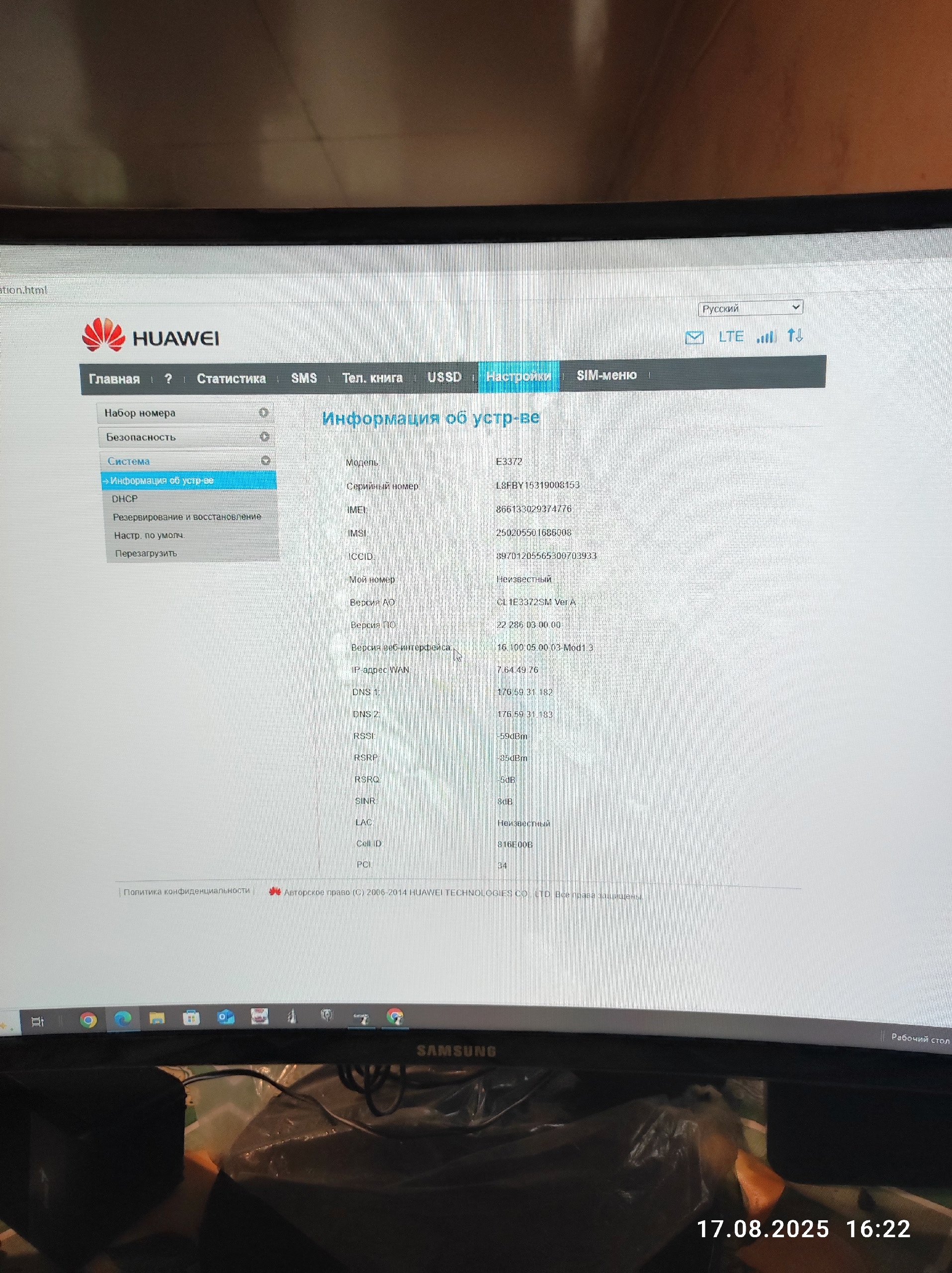 Тип антенны и поддерживаемый стандарт LTE