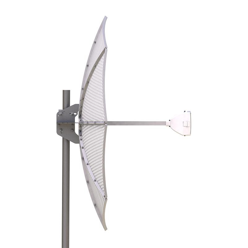 - Рабочий диапазон частот 1700–2700 МГц. Облучатель антенны работает в широком диапазоне и поддерживает основные стандарты LTE-интернета: B1 (LTE-2100), B3 (LTE-1800), B7 (LTE-2600) и некоторые другие. На этих частотах запущены наиболее скоростные сети мобильного интернета;