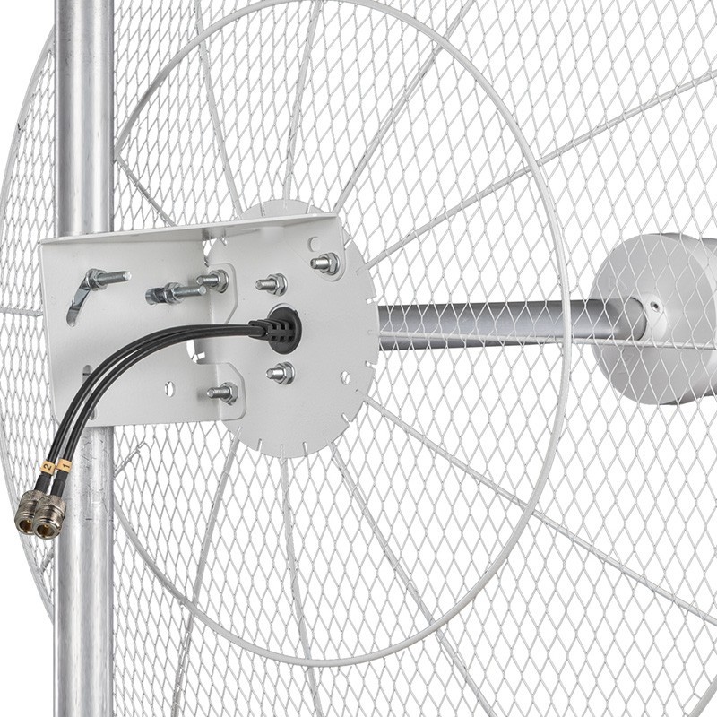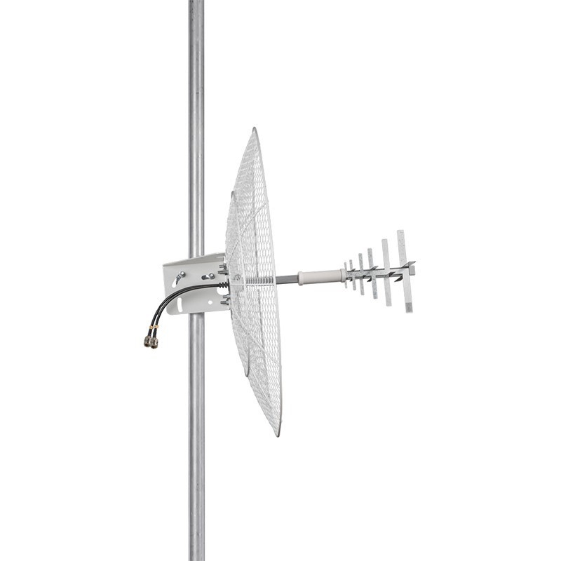 Модель KNA21-700/2700 выделяется высоким коэффициентом усиления до 21 дБи, что делает ее хорошим вариантом для ситуаций, где панельные антенны или конструкции типа «волновой канал» не справляются со своими задачами.