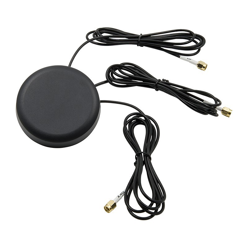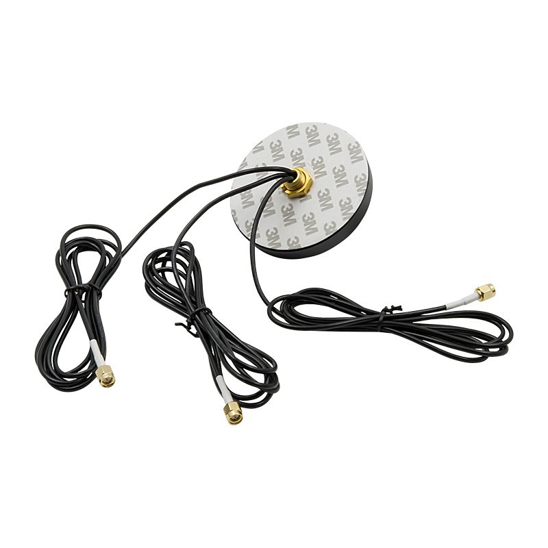 Эта модель помогает принимать сигнал в условиях, где встроенные антенны теряют связь, например, внутри металлических боксов или в салоне автомобиля. Изделие оснащено двумя физическими излучателями и тремя кабелями с разъемами SMA-male для подсоединения к оборудованию. Волновое сопротивление всех компонентов составляет 50 Ом.