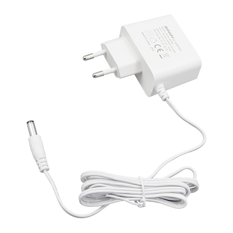 Блок питания преобразует переменный ток бытовой сети в постоянный, обеспечивая питание роутера через разъем DC (5,5 x 2,1 мм). Устройство подключается к розетке, а кабель напрямую соединяется с портом питания маршрутизатора. Адаптер предназначен только для использования внутри помещений, так как не имеет защиты от влаги или пыли.