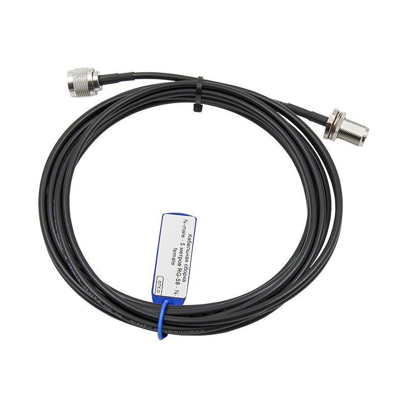 Удлинитель длиною 5 метров на базе кабеля RG-58 A/U оснащен разъемами N-male и N-female. Такая пара коннекторов разного типа позволяет подключать сборку напрямую к существующей трассе, увеличивая ее длину без переходников или перекладки всей линии. Изделие подходит для комнатного или уличного использования и обеспечивает умеренные потери, допустимые для большинства радиосистем.