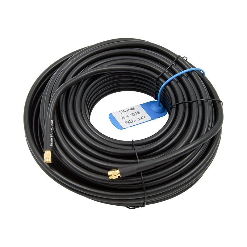 Кабельная трасса с коннекторами SMA-male длиною 20 метров. Такую сборку выбирают, когда антенна находится на крыше или за окном, а роутер, модем или усилитель стоят глубоко внутри помещения. Кабель 5D-FB отлично справляется с этой задачей: его погонное затухание достаточно мало, чтобы на двадцатиметровом отрезке сигнал дошел до устройства в рабочем состоянии.