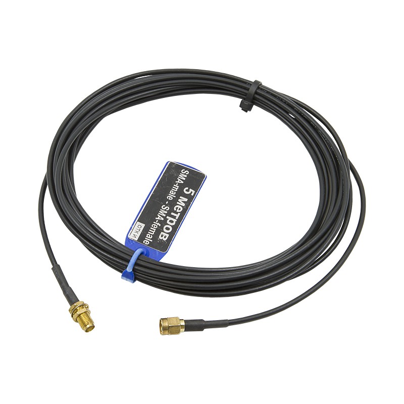 Тонкий соединительный кабель RG-174 с коннекторами SMA-male (вилка) и SMA-female (розетка). Небольшой диаметр провода (всего 2,8 мм) допускает монтаж в ограниченных пространствах, где требуется малый радиус изгиба. Поскольку на дистанции 5 метров марка RG-174 вносит определенный уровень затухания, мы рекомендуем применять эту сборку для передачи только стабильного сигнала, где потери не окажут влияния на работоспособность системы.