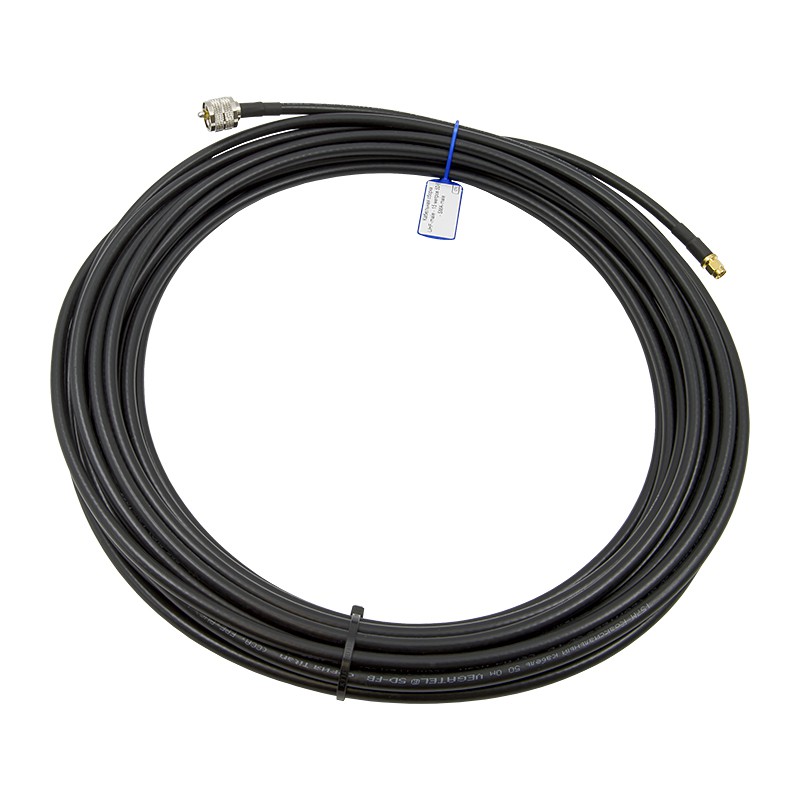 Готовая кабельная линия длиной 15 метров с установленными на концах разъемами UHF-male (PL-259) и SMA-male. Сборка выполнена на базе коаксиала 5D-FB — гибкого кабеля диаметром 7,5 мм с низкими потерями в диапазонах радиосвязи. Такая протяженность позволяет разнести антенну и приемное оборудование на значительное расстояние, что актуально при выносе антенны на крышу здания или мачту.