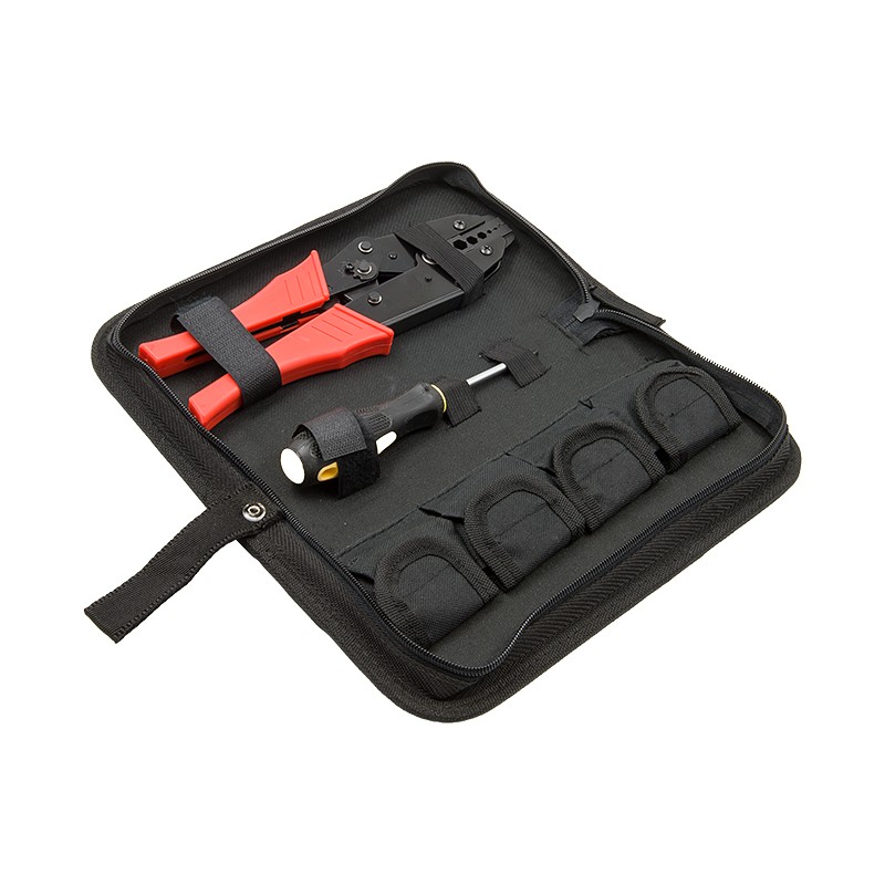 Обжимной инструмент с набором сменных матриц, отверткой и удобным чехлом в комплекте для установки разъемов на разнообразные марки коаксиальных кабелей. LX02H это готовый набор для монтажников слаботочных систем. Вместо того, чтобы возить по объектам или использовать несколько отдельных клещей, приобретите один набор со сменными элементами!