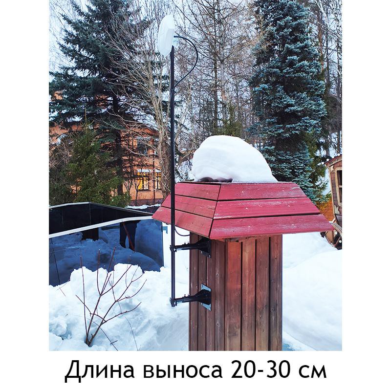 Дачные дома, коттеджи, ангары и другие здания часто имеют выступающие элементы фасада. Карнизы, фронтоны, оконные отливы и другие выступы обычно не позволяют разместить трубостойку вплотную к внешней стене. Чтобы обойти эти препятствия, используются кронштейны, при помощи которых мачта размещается на некотором расстоянии от монтажной поверхности.