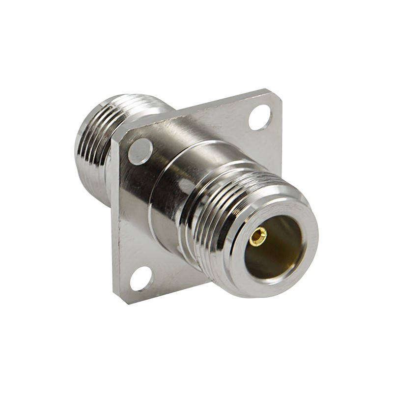 - Стандартные N-розетки. Обе стороны переходника — коннекторы N-female, поддерживающие передачу сигнала частотой до 11 ГГц. Розетки имеют наружную резьбу и центральный гнездовой контакт. Эти коннекторы являются общепринятым типом соединителей для радиоаппаратуры, включая репитеры, точки доступа, подавители сигналов, генераторы и т. п.;
