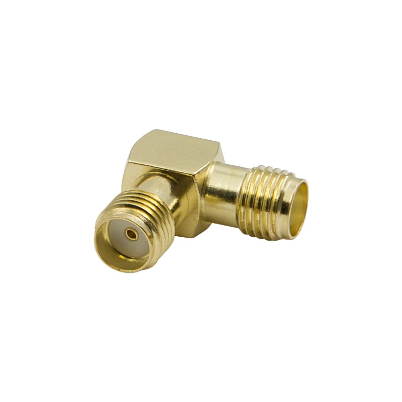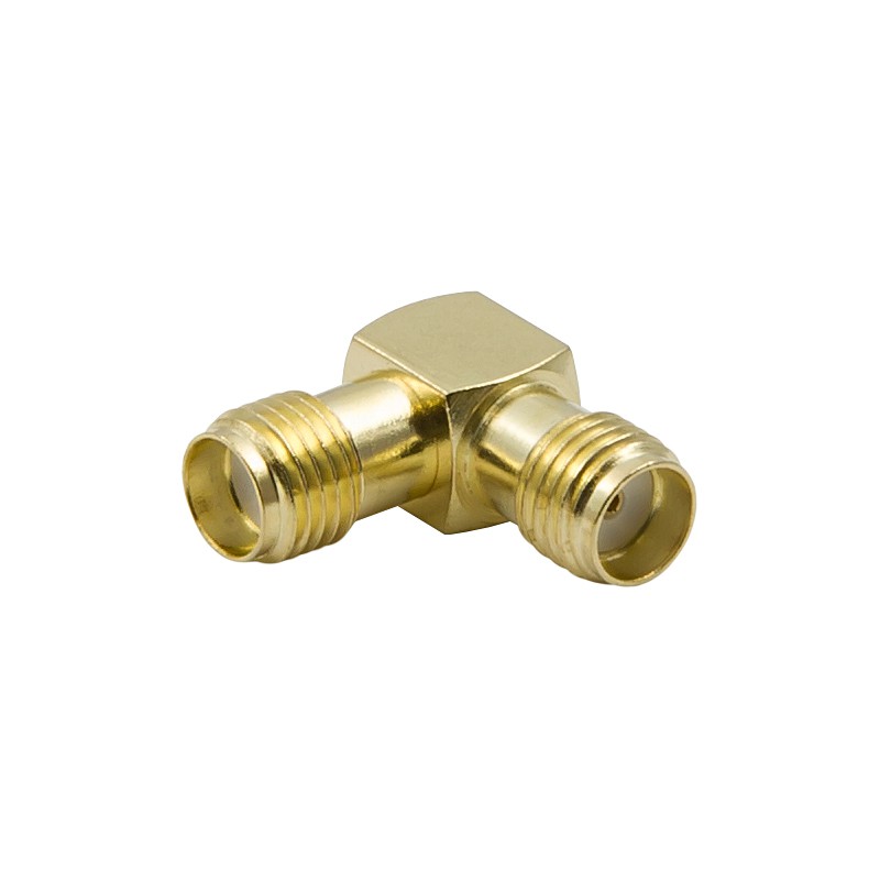 Угловой адаптер с двумя разъемами SMA-female для соединения кабельных сборок под углом 90°. Конструкция позволяет состыковать два кабеля с коннекторами SMA-male в ситуациях, где неудобно прямое соединение. Волновое сопротивление 50 Ом обеспечивает согласование с радиотехникой.