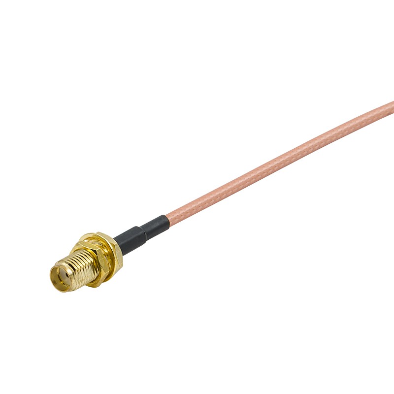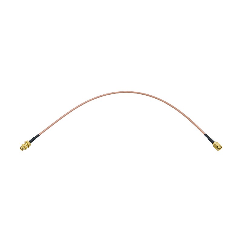 - Разъемы SMA с золотым покрытием контактов. На концах установлены коннекторы SMA-male (вилка) и SMA-female (розетка) с импедансом 50 Ом. Центральные контакты покрыты золотом — это улучшает качество соединения и защищает от окисления. Резьбовое соединение надежно фиксирует контакт и обеспечивает долгий срок службы даже при частом отключении и подключении;