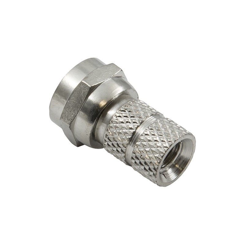 Накручивающийся разъем F-male для простой установки на коаксиальный кабель RG-58. Коннектор очень прост в монтаже, не требует пайки и обжима. Центральным контактом выступает жила кабеля, что устраняет необходимость в пайке центрального пина. Этот вид соединителей имеет импеданс 75 Ом и обычно устанавливается на радиокабели при использовании комплектующих с разным волновым сопротивлением.