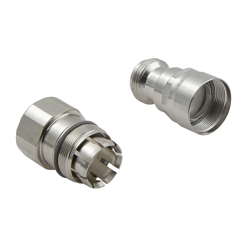 Большой диаметр фидера и наличие сплошного гофрированного экрана препятствуют использованию привычных обжимных разъемов. Именно поэтому для фидеров выпускаются отдельные коннекторы, которые устанавливаются прижимным методом. Для монтажа NF-1/2F не нужны специальные приспособления, поскольку вся подготовка кабеля, включая разделку и зачистку, может быть выполнена с использованием обычных инструментов.