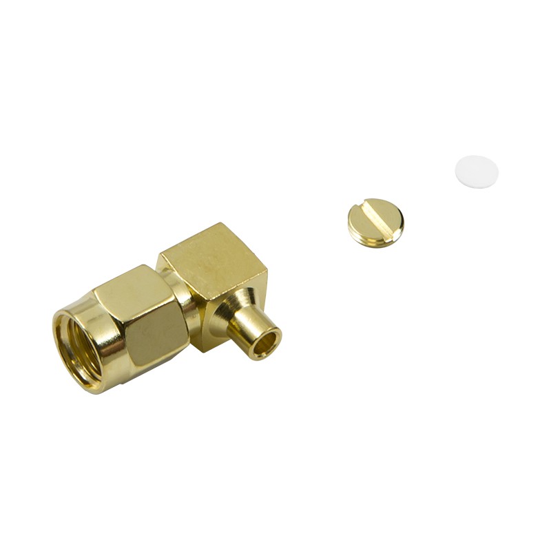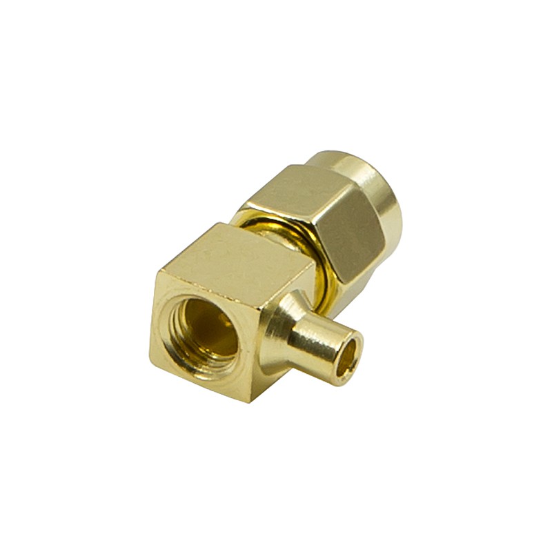 Угловая конструкция разъема позволяет подключать оборудование в стесненных условиях, когда прямое соединение невозможно из-за близости стен корпуса или других компонентов. Изгиб проводящей линии на 90° происходит непосредственно в корпусе коннектора, что исключает необходимость сгибать сам провод RG-405 под острым углом.