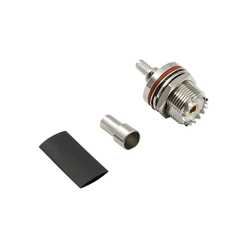 Разъем U-231F — это обжимная UHF-розетка (female) для коаксиального кабеля RG-58 A/U, C/U и аналогичных марок с диаметром диэлектрика 3 мм и оболочкой 5 мм. Он применяется для соединения антенн с радиостанциями или другим оборудованием в системах низкочастотной радиосвязи (0–300 МГц). Подходит для радиолюбителей, а также для специалистов, монтирующих стационарные радиоточки.