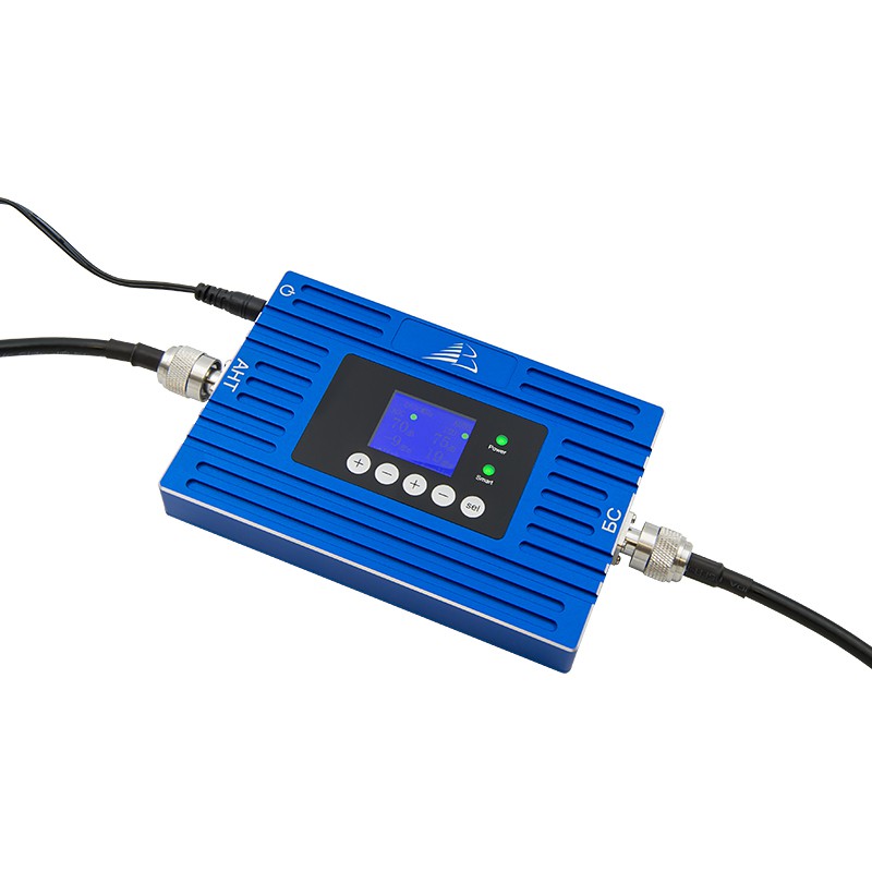 - Крупный ЖК-дисплей с индикацией сигнала. Информация о работе репитера наглядно отображается на экранчике. Вы можете быстро узнать текущий коэффициент усиления и мощность сигнала, что удобно во время настройки наружной антенны;