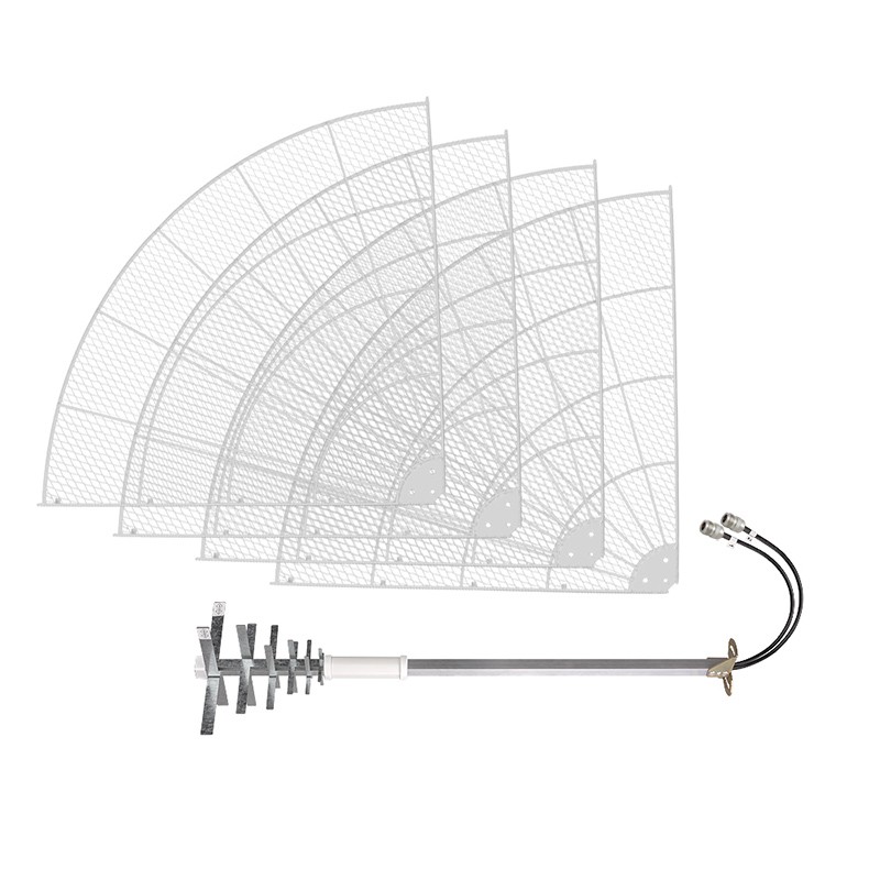 - Поддержка MIMO-режима. Рефлектор и облучатель оптимизированы для работы по схеме MIMO 2x2, где прием ведется по двум потокам с разной поляризацией. Это увеличивает скорость передачи и повышает стабильность соединения;
