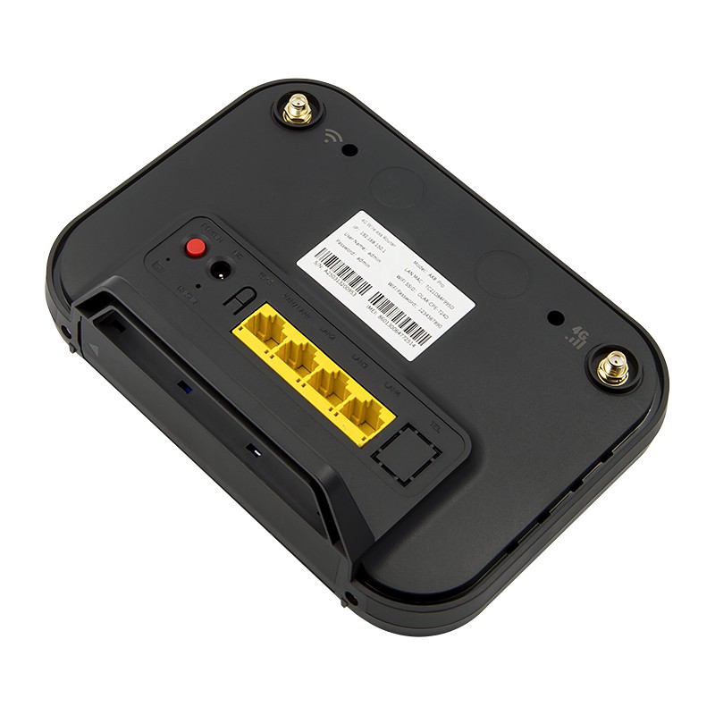 C обратной стороны устройства расположены четыре гигабитных Ethernet-разъема (1000 Мбит/с), которые позволяют подключить к роутеру стационарные ПК, игровые приставки, коммутаторы, точку доступа или другое LAN-оборудование. При необходимости один из портов можно использовать для проводного интернета от провайдера, оставив мобильное соединение в качестве резервного канала.