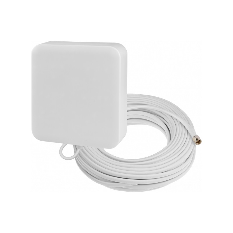 Внешняя панельная антенна поставляется с кабелем 20 метров. Этой длины более чем достаточно, чтобы вывести антенну на крышу или закрепить на стене с нужной стороны здания. На конце провода установлена вилка SMA, которая подсоединяется к репитеру без переходников.
